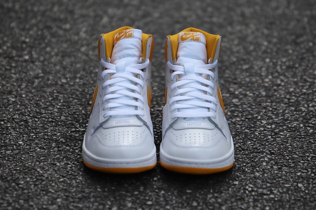 Air Shipは、Michael Jordanが、ルーキーシーズンである1984-85シーズンのプレマッチや幾つかの前半戦でのみ着用されていた知る人ぞ知る1足。2020年には、“New Beginnings”パックの一部として復刻された本モデルから、マットな質感のホワイトレザーでアッパーの大半を構成した新色が登場する。本モデルのアンクル部分やスウッシュ、アウトソールは鮮やかなオレンジを採用。シューレースは、ホワイトとオレンジの2色が付属される。