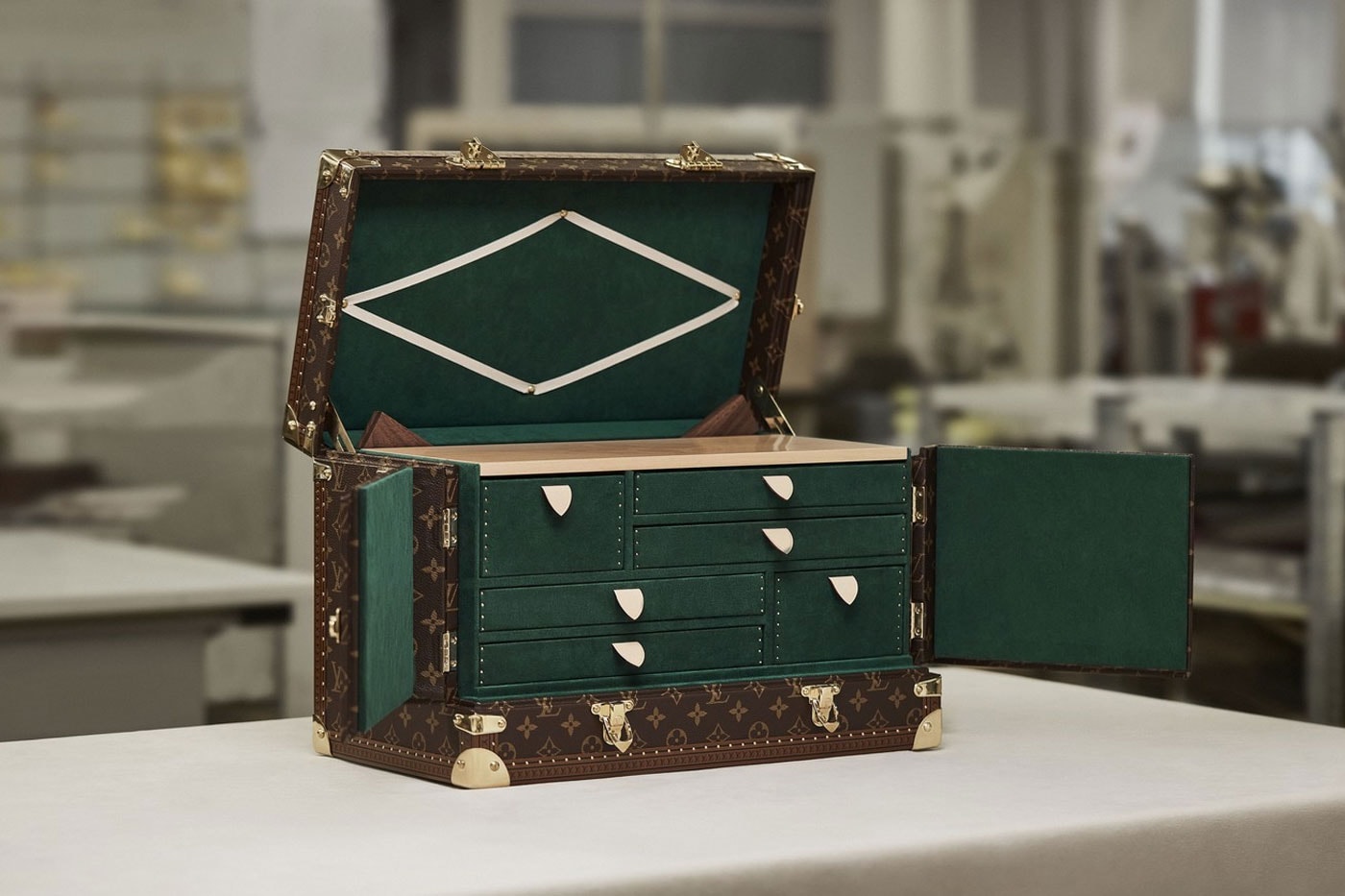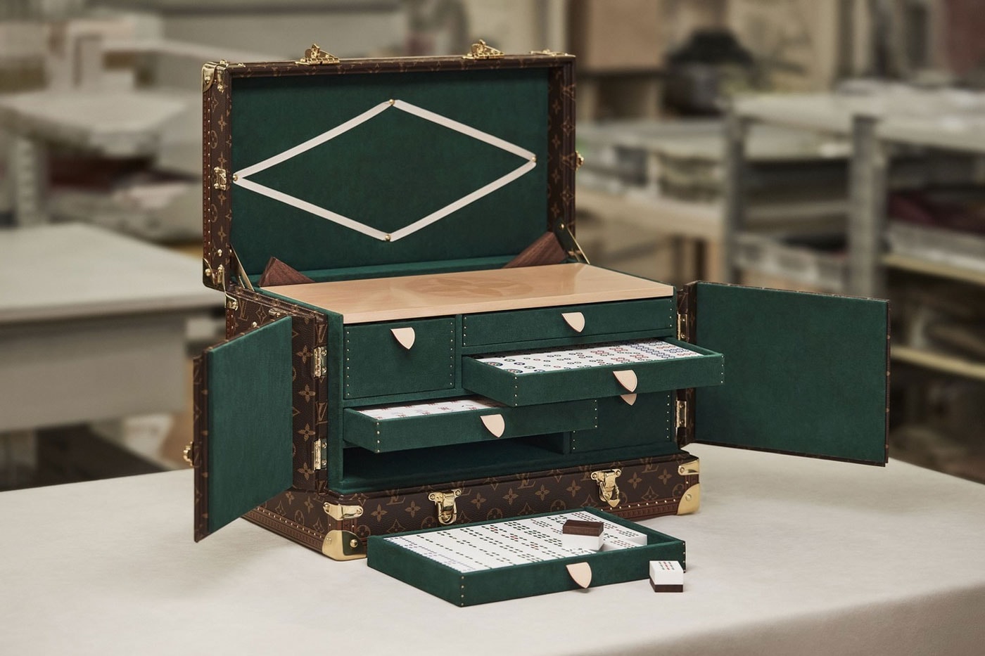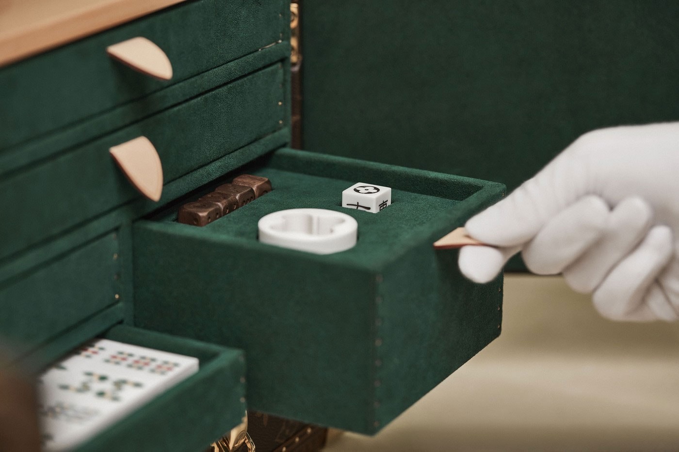 今回登場する麻雀セットは、2021年にリリースされたもの同様、アメリカンウォールナットを採用した麻雀牌やサイコロ、風向計、点棒などが付属される。木製の6段の引き出しボックスは、天然の牛革と深みのあるグリーンの裏地を備えた〈Louis Vuitton〉を象徴するモノグラム・キャンバスのトランク仕様の専用ケースに収納できる。この麻雀セットの発売情報に関しては、本稿執筆時点で確認できていないため、まずは上のフォトギャラリーからディテールをチェックしよう。