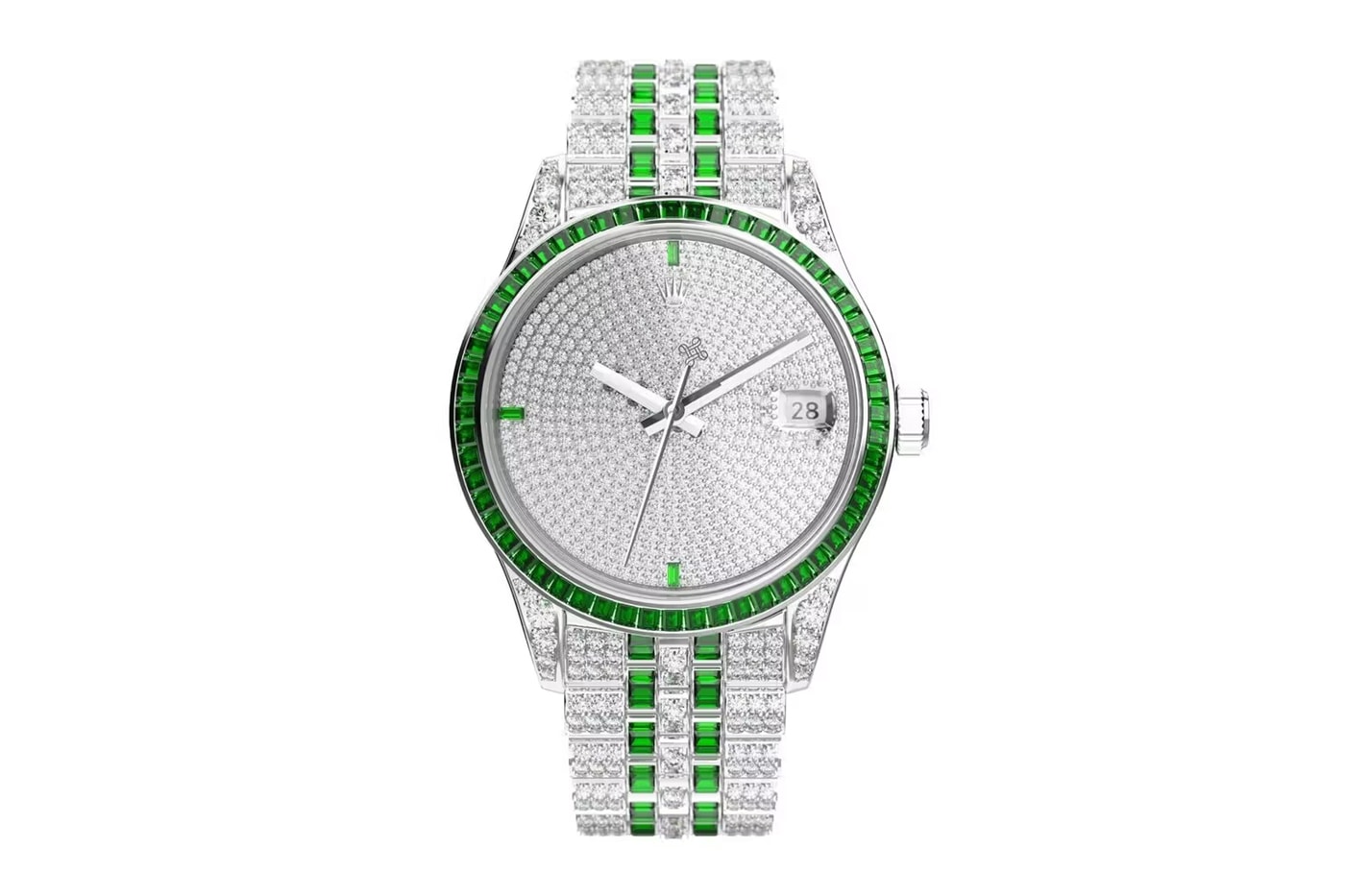彼らが今回カスタムしたのは、Daytona(デイトナ)やSubmariner(サブマリーナ)、Datejust(デイトジャスト)といった〈Rolex〉を象徴するモデルの数々。まずDaytonaは、ソルベ・ココナッツ・セラミック・コーティングを施した1本。SubmarinerはスチールDLC(ダイヤモンドライクカーボン)コーティング加工されており、マットなブラックのボディがクールな印象に。そしてDatejustは8カラットのホワイトダイヤモンドとグリーンサファイアを全面に散りばめ、ラグジュアリー仕様にアレンジ。その他にはパシフィックブルーのセラミックコーティングを施したモデルなども用意され、他にはないユニークなカスタムが魅力のコレクションとなっている。