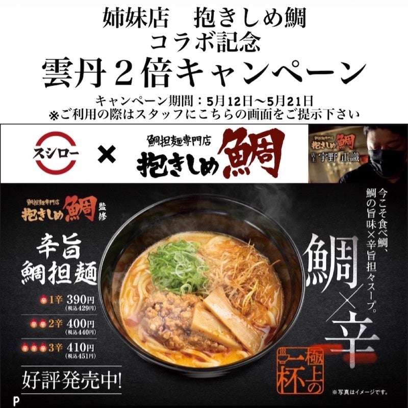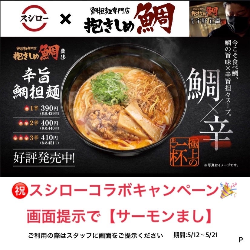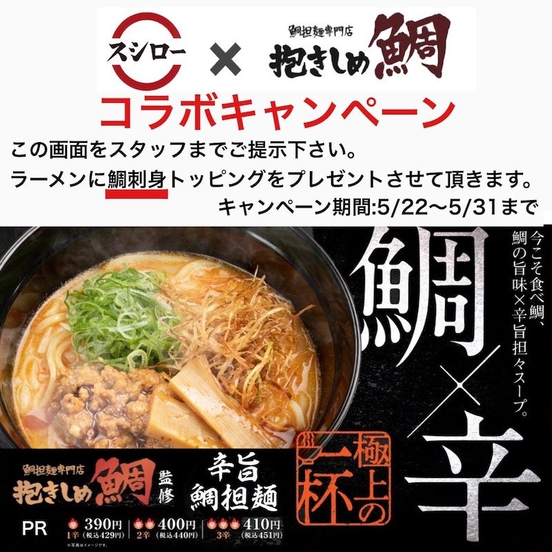 【全国のスシローで販売!「辛旨 鯛担麺」詳細】
